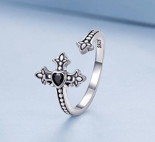 Silver & Black Crucifix Ring