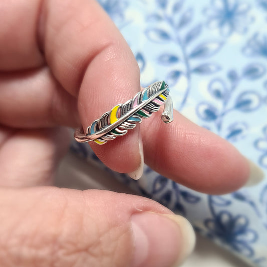 Silver Rainbow Feather Ring