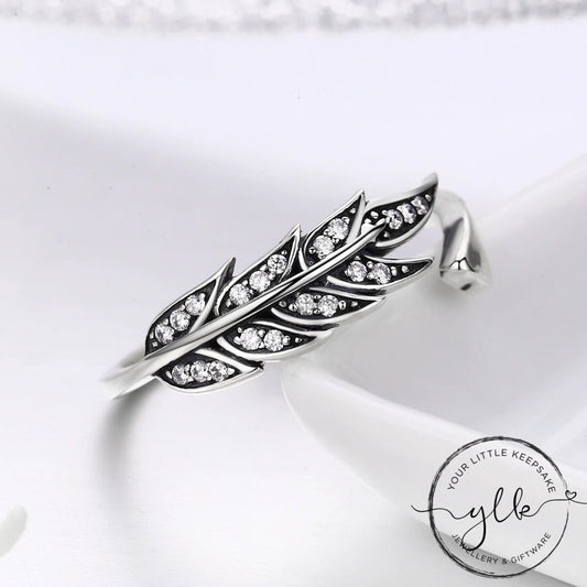 Sparkly Blue Feather Ring