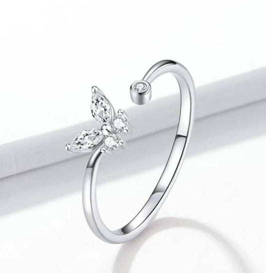 Silver Diamante Butterfly Ring