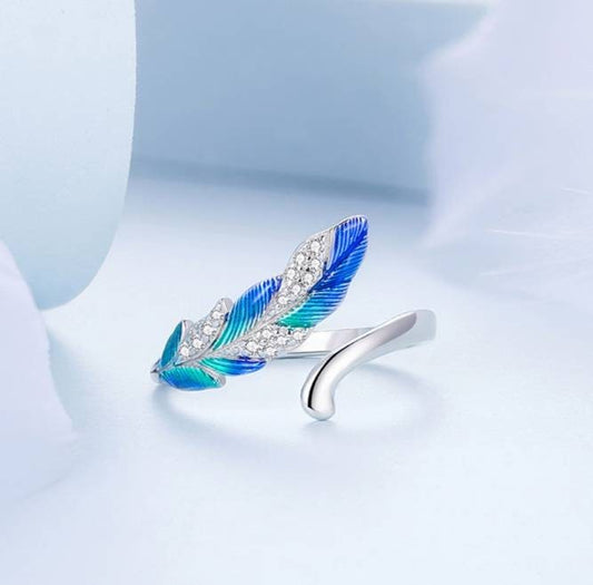 Blue and Green Feather Ring