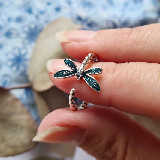 Silver & Teal Dragonfly Ring
