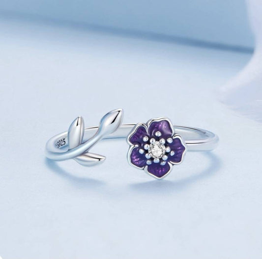 Silver Purple Flower Ring