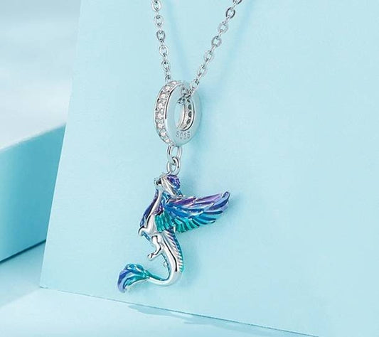 Silver & Blue Dragon Bracelet Charm