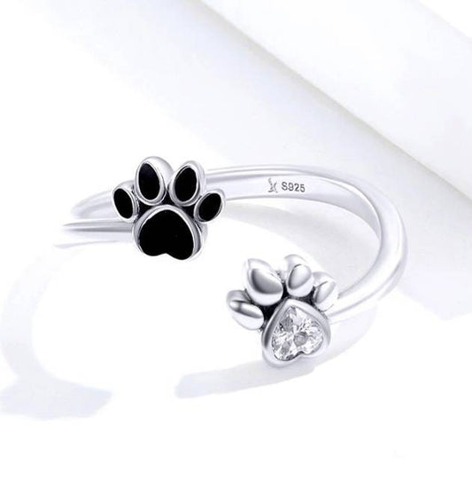Silver & Black Paw Print Ring