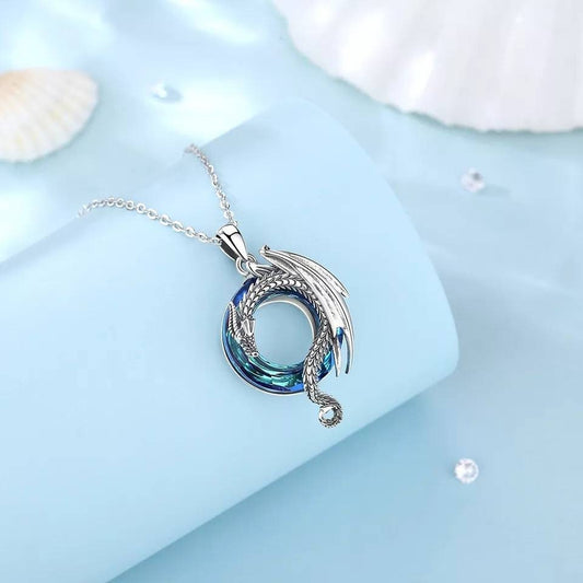 Silver Dragon Crystal Circle Necklace
