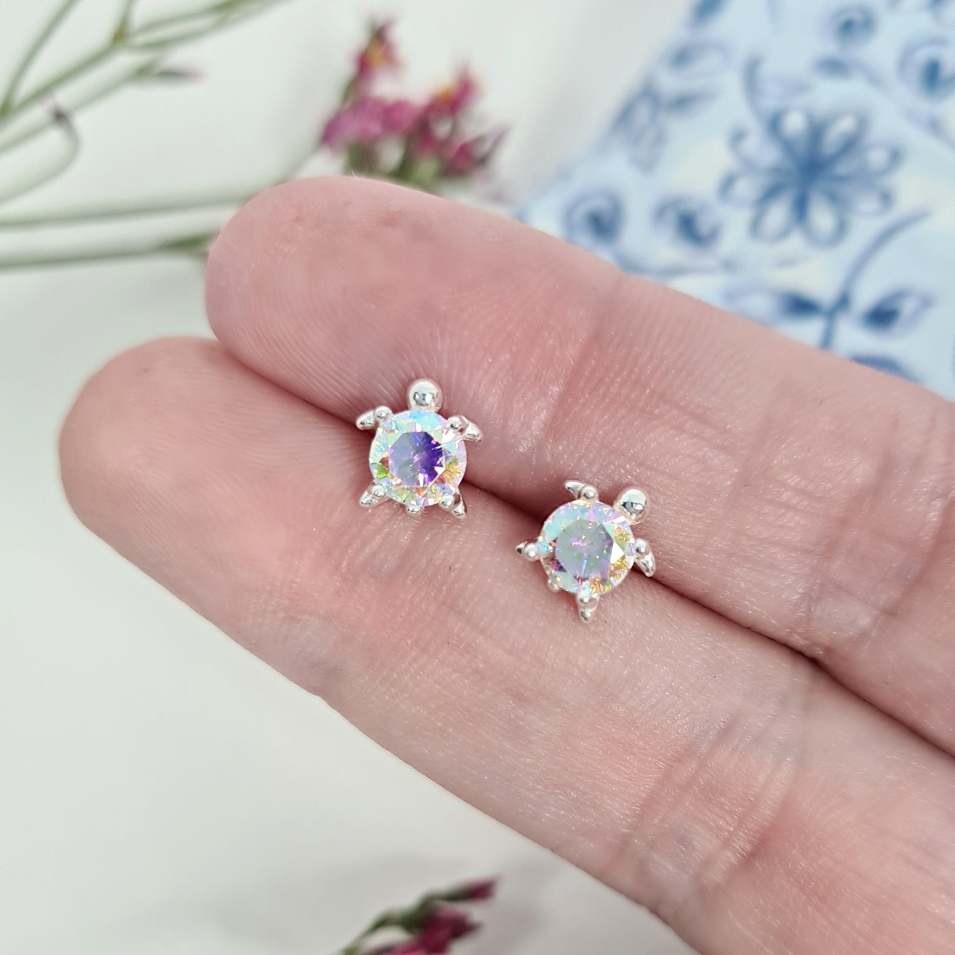 A gorgeous pair of mini earrings with colour changing cubic zirconia stone.