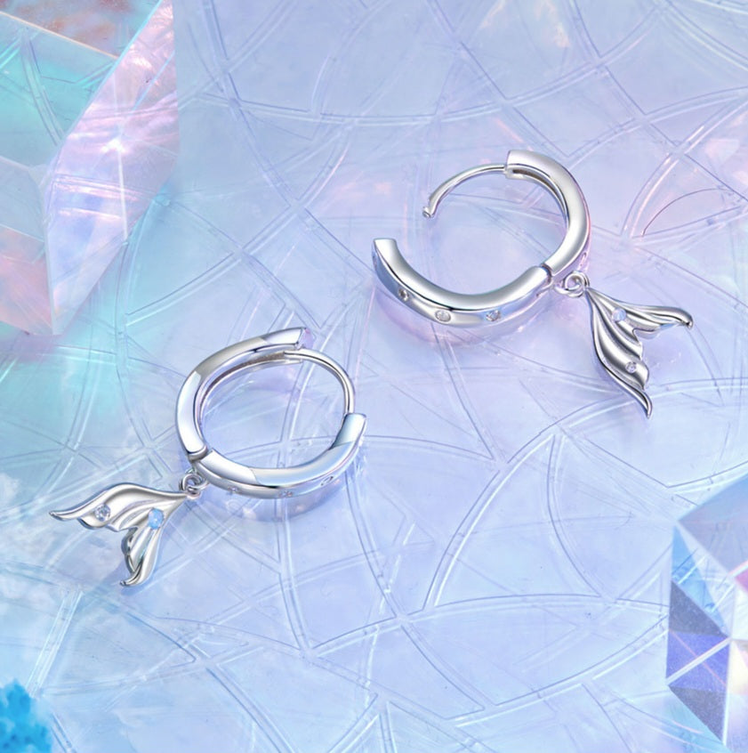 Bring a sense of the beach to your style this summer with these beautiful, mermaid-inspired huggie hoops. Crafted from sterling silver, with gemstones and dangling mermaid tail.