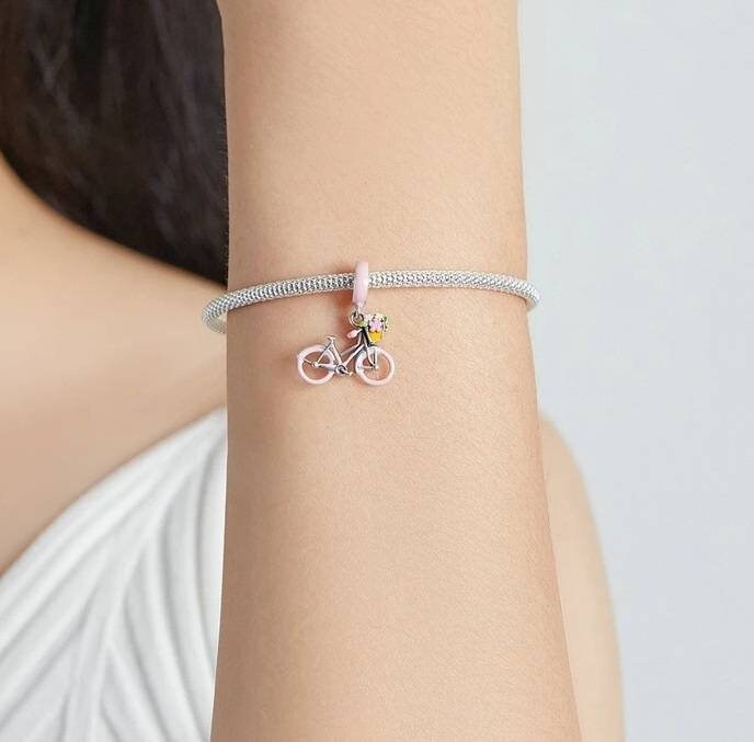 Pink Bicycle Bracelet Charm