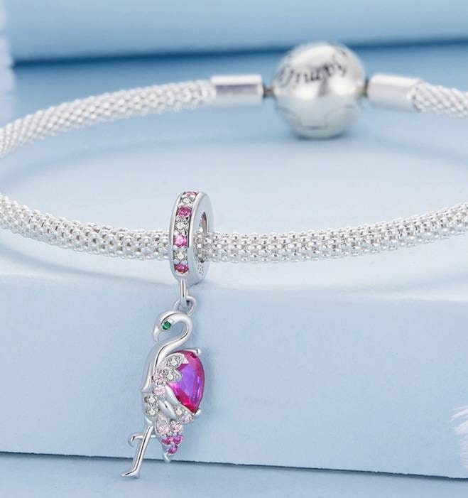 Sparkly Pink Flamingo Bracelet Charm