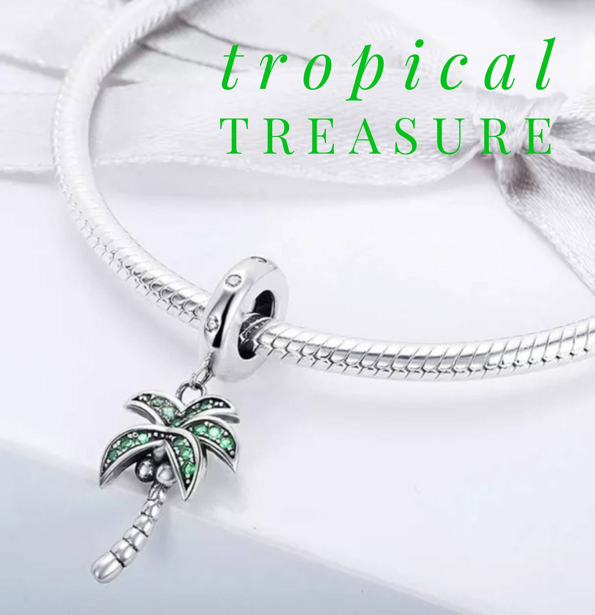 The palm tree charm is approximately 2.2cm in length and can attach to YLK bracelets as well as Pandora and other well known brands.