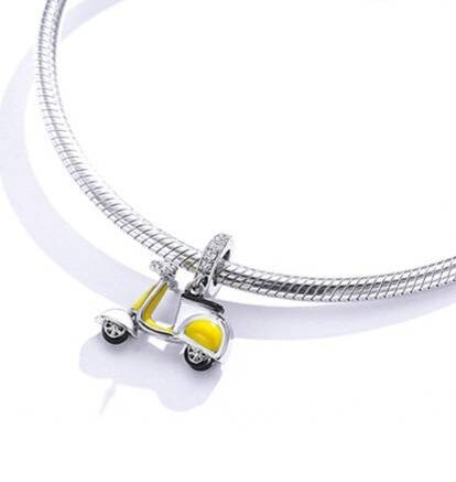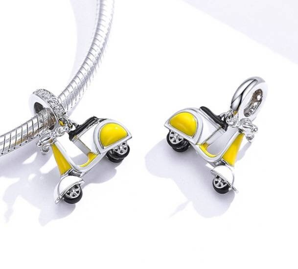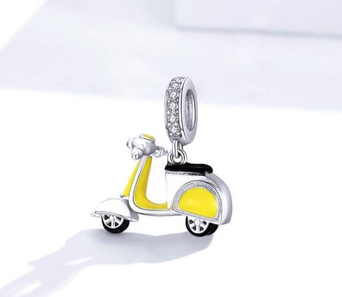 Beautiful sterling silver scooter dangle charm in yellow. Perfect for any Vespa or Lambretta enthusiast.